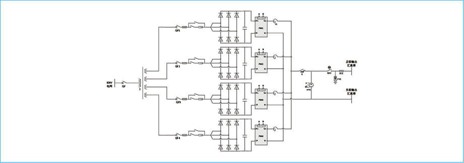 額定輸入電壓為AC10kV,經(jīng)過交流開關柜、整流變壓器、低壓斷路器、輸入熔斷器、主接觸器、輔助接觸器、軟啟動電阻,經(jīng)過AC/DC整流器,再經(jīng)過DC/DC變流器、輸出接觸器、單極電動隔離開關、輸出熔斷器給車載超級電容充電。